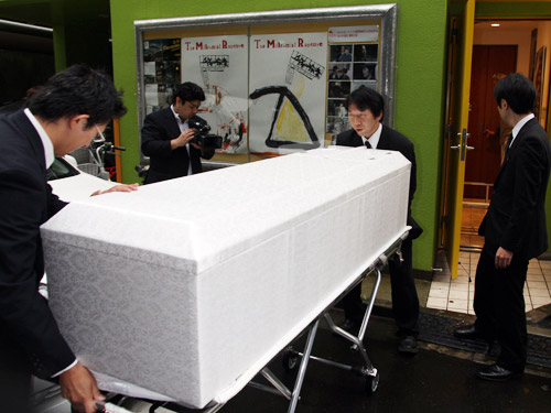 無言の帰宅をした若松孝二監督の棺