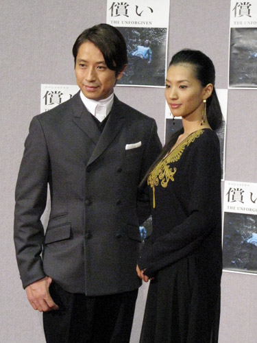 ドラマ「償い」の制作発表会見に出席した谷原章介。右は芦名星