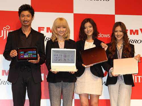 「EXILE」のMAKIDAI(36)と、女性ユニット「E―Girls」のAmi(24)、藤井萩花(18)、KAREN(16)が19日、都内で行われた「富士通Windows8搭載新製品発表会~新CMもお披露目~」に出席した。