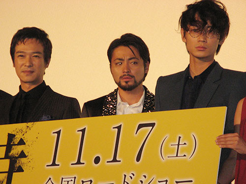 映画「その夜の侍」の舞台あいさつを行った(左から)堺雅人、山田孝之、綾野剛