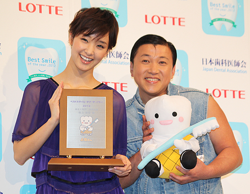 今年で19回目となる同賞は、全国の歯科医師会会員6万5000名の投票で選出。「いい歯の日」を記念し、毎年11月8日に表彰が行われている。昨年は女優の武井咲(18)、フットサル日本代表の三浦知良(45=J2横浜FC)が受賞した。