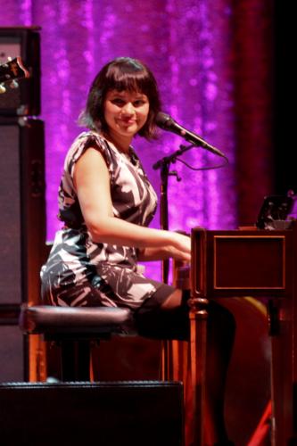 7年ぶり3度目の来日公演。「コンバンハ、ハウアーユー?」と笑顔で登場し、「来てくれてありがとう」と日本語であいさつ。「ハッピー・ピルズ」など4月に発売したアルバム「リトル・ブロークン・ハーツ」の収録曲を中心に、代表曲「ドント・ノー・ホワイ」など21曲を歌唱。ピアノの弾き語りもあり、スモーキーなハスキーボイスで1万人を魅了した。