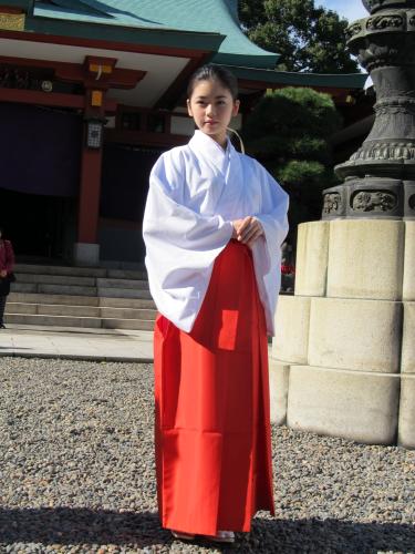赤と白の巫女(みこ)装束で任命式に登場し、子供たちの成長を祈願。7月にフジテレビのドラマ「息もできない夏」で女優デビューしたばかりで、「人を感動させられる女優になりたい」と抱負。巫女姿は初めてで、「どうですか?」と笑顔で感想を求めた。