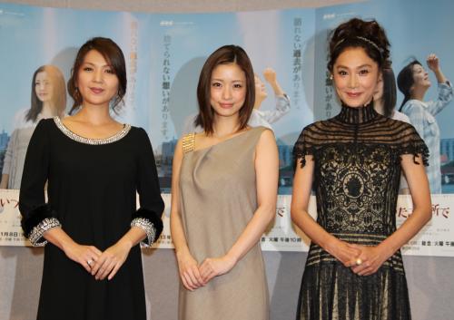 NHKドラマ10「いつか陽のあたる場所で」初回試写会に登場した(左から)飯島直子、上戸彩、浅野温子