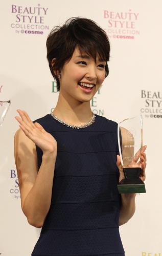 「ベストスマイル・オブ・ザ・イヤー」などに続いて今年8賞目。「全部の賞がうれしい」と笑顔を見せ、「アカデミー賞主演女優賞は?」と問われると「いつか欲しい。死ぬまで女優を続ける」と誓った。モデル部門は水原希子(22)、タレント部門は中川翔子(27)、特別賞はミス・インターナショナルの吉松育美(25)。
