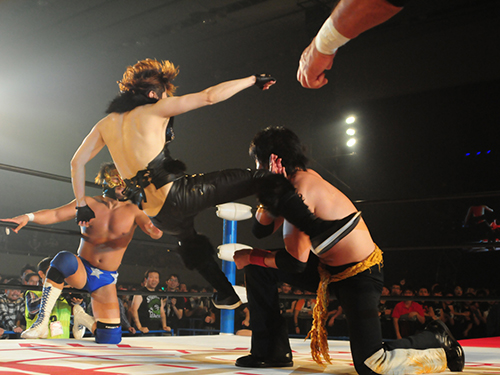 「T.M.Revolution」西川貴教(42)が24日、横浜市でクリスマスイブ恒例の男性限定イベントを行った。全日本プロレスの武藤敬司(50)とタッグを組み、会場にリングを特設して歌とプロレスの両方が楽しめる異色のコラボ企画。ヒール軍団に武藤が襲撃されると西川も参戦。武藤の得意技をアレンジした「シャイニング・レボリューション」を披露した。