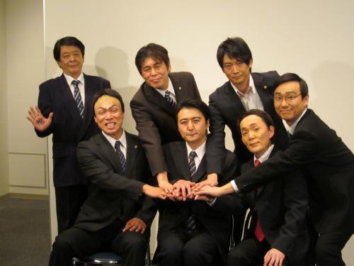 社会風刺コント集団「ザ・ニュースペーパー」が26日、「安倍内閣誕生記念」と題した記者会見を都内で開いた。