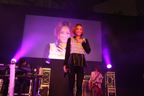 首元に金のアクセサリーをつけ、上半身は銀のベストというメダルを想起させるスタイリング。照明を浴びるたびにまばゆい光を放ちながら、「頑張る人のために作った」という新曲「standing for you」(2月27日発売)など4曲を拳を頭上に突き上げながら歌唱。約3000人から大きな声援を浴び、気持ちよさそうに歌声を響かせた。