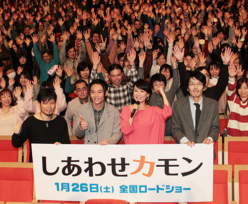 女優の鈴木砂羽(40)が13日、都内で、主演映画「しあわせカモン」(監督中村大哉、26日公開)の試写会に出席した。