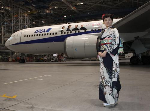 全日本空輸は14日、ことしのNHK大河ドラマ「八重の桜」の出演者を機体に描いた特別塗装機を羽田空港で公開した。12月まで国内線に就航する。