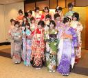(左から) ミス日本ネイチャーの竹上萌奈さん、ミス日本海の日の渡辺けあきさん、ミス日本グランプリの鈴木恵梨佳さん、ニス日本水の天使の横山林沙さん、ミス日本着物の古賀ゆかりさん