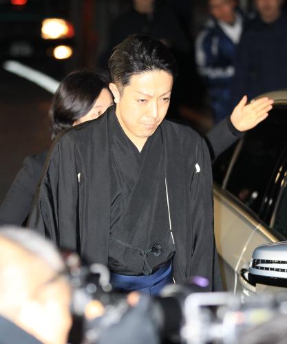 団十郎さんの通夜が行われる実家に入る市川海老蔵