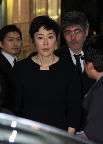 弔問を終え引き揚げる寺島しのぶ
