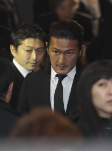 弔問を終え引き揚げる市川中車