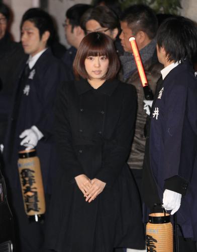 市川団十郎さんの通夜に弔問に訪れた三田寛子