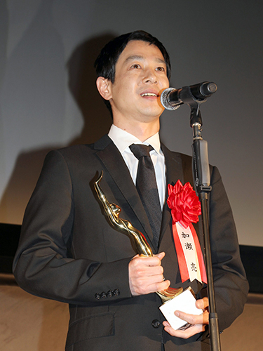 【男優助演賞】「アウトレイジ ビヨンド」で男優助演賞に輝いた加瀬亮(38)は毎日映コン初受賞。「歴史ある賞で表彰してもらい光栄に思います」と穏やかな口調で語った。その物静かなイメージとかけ離れた極悪ヤクザ役。「とても等身大では演じられない役。今思い返すと心配と不安ばかりの毎日でした。長い間、悩みながら演じてました」と撮影を振り返った。