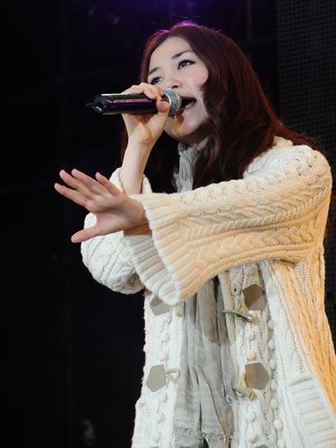 大阪出身の歌手ティーナ・カリーナ(27)が9日、大阪市内で開かれたFM802の公開放送に登場し、ヒット曲「あんた」など4曲を熱唱した。