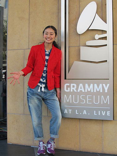 グラミー賞の歴史や米国の音楽史に触れ、曲作りなどを体験できる「グラミー・ミュージアム」も視察。人と会話しているより、音楽を聴いている時間の方が長く、特にロックがお気に入り。チャック・ベリーの特大ポスターを見つけると、「大大大スター、ここを離れたくない。格好いい!」と大はしゃぎ。マイケル・ジャクソンの衣装にも大興奮するなど、20歳の女の子らしい一面も見せた。