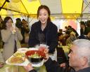 チェ・ジウ 福島仮設住宅訪問 エプロン姿で韓国料理ふるまう