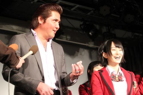 アイドルグループとして「てっぺん」を目指すメンバーたちに、Vシネマの帝王として「継続は力なり。陰ながら応援してます」とエールを送った。