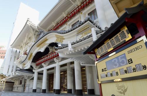 劇場とオフィスビルの複合施設の名称は「GINZA KABUKIZA」で、歌舞伎俳優で人間国宝の坂田藤十郎(81)、尾上菊五郎(70)、中村吉右衛門(68)らのほか、松竹や建設関係者が出席。
