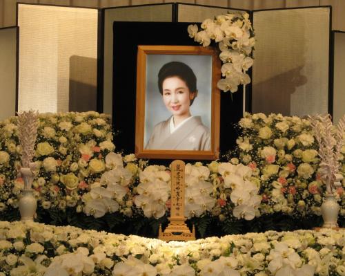 劇団新派の仲間だった水谷八重子(73)や波乃久里子(67)、坂東玉三郎(62)ら約300人が参列。戒名は麗光院演妙真幸大姉(れいこういんえんみょうしんこうたいし)。大切にしていたひな人形などが棺に入れられた。5日、同所で葬儀・告別式が営まれる。
