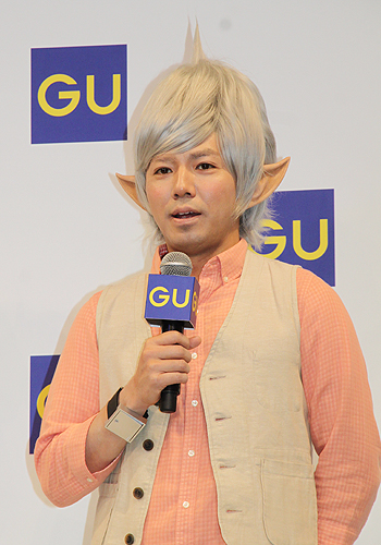 「ジーユー」新ロゴ、新キャラクター発表会に出席したピースの綾部祐二