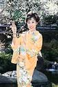 境内は、「梅まつり」で連日にぎわう中、本殿でスタッフらと一緒に祈願を行った。ラッキーカラーだというオレンジ色で、花水木の花柄の着物を着た彼女は「何よりもうれしいのは、梅の花が満開だということ。これまでの厳しかった寒さがちょっとやわらいだことは、幸先のいいような気がします」とニッコリ。