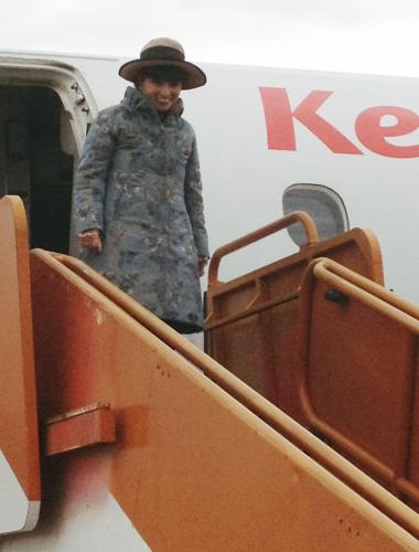 南スーダンの首都ジュバの国際空港に到着した黒柳徹子