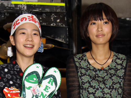 次期連続テレビ小説ヒロイン・能年玲奈(左)にエールを送った夏菜