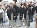 人気俳優が勢ぞろいするのは異例で、染五郎のファンで、4月の公演を見に行くという江東区の主婦、武藤洋子さん(66)は「これだけたくさんの役者さんをこんな間近に見ることができるなんて幸せ」と興奮気味。大通り沿いの楽器店の男性店員は「昨年の(プロ野球の)巨人、五輪選手ともバス。雨の中、歩く役者さんたちの心意気を感じました」と盛んに拍手を送った。