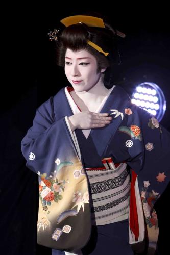 「劇団 花月」の座長を母に持ち、2歳から団員として巡業に出演してきた。りりしい男役から艶やかな女役、殺陣、舞踏、タップと何でもこなす若き花形スターだが「ひばりさんの曲は本当に難しい。特に低音に苦労しています」と奮闘中。得意の踊りは「これまでは渋い曲は難しかったのですが、最近は踊れるようになってきた。今回は粋に仕上がっています」と成長した姿を見せる。