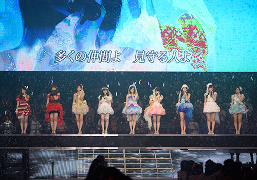 矢神久美(18)小木曽汐莉(20)高田志織(22)平松可奈子(21)桑原みずき(21)上野圭澄(18)小林絵未梨(18)原望奈美(17)赤枝里々奈(16)の9人それぞれがセンターを務めてユニット曲を披露。また、卒業メンバー“旅立ち卒業組”で歌う「それを青春と呼ぶ日」を、松井玲奈(21)松井珠理奈(16)らメンバーが涙しながら見届けた。