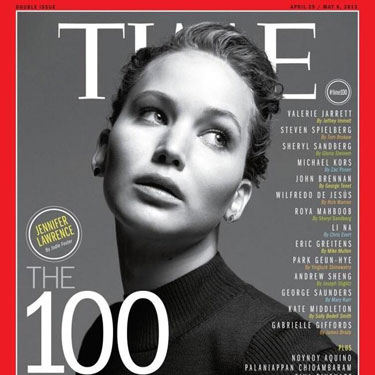 オスカー女優のジェニファー・ローレンス(22)が米タイム誌の「世界で最も影響力のある100人」の1人に選ばれた。