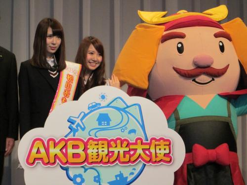 AKB48の菊地あやか(19)と名取稚菜(17)が13日、愛媛県松山市の観光大使「松山おもてなし大使」に任命された。