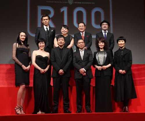 「ダウンタウン」の松本人志(49)が13日、都内で監督4作目となる映画「R100」(10月5日公開)の製作発表会見に出席し、R18を大きく上回るタイトル通り!?大地真央(57)寺島しのぶ(40)ら女優陣が限界ギリギリの露出に挑戦していることを報告した。実際にR指定となるかは未定だが、「もうムチャクチャな映画。頭をすっ飛ばして見てください」と過去3作を超える奇想天外な仕上がりに自信を見せた。