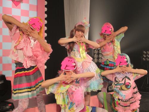 顔に「だ」の文字を付けた「だだだダンサー」と新曲「インベーダーインベーダー」の発売記念ライブを開いたきゃりーぱみゅぱみゅ