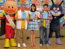 映画「それいけ!アンパンマン とばせ!希望のハンカチ」の公開アフレコを行った(左から)本仮屋ユイカ、「サンドウィッチマン」富澤たけし、伊達みきお