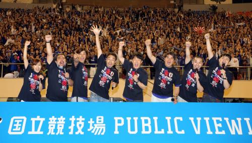 サッカーW杯アジア予選のオーストラリア戦のパブリックビューイングにゲスト参加した市立船橋高校サッカー部出身のお笑いコンビ「ペナルティ」のヒデ(42)は「とにかく予選突破が目標だったのでホッとした」と安どの表情。