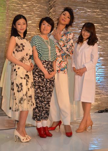 テレビ東京「みつ星の館」の会見に出席した(左から)壇蜜、光浦靖子、ミッツ・マングローブ、秋元玲奈アナ