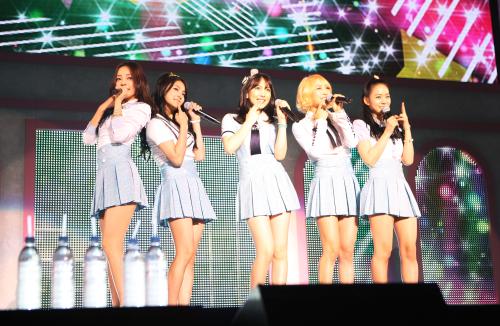 テーマは学校で、制服姿のメンバーが教室風セットのステージに登場。授業形式のゲームでファンと触れ合い、終盤はヒット曲「ミスター」など6曲を披露。歌唱中、客席に「KARA」の人文字が浮かび上がると、5人は感激の涙をこぼした。10月から7都市14公演の来日ツアーを行う。