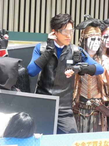 主演映画「劇場版 タイムスクープハンター」(8月31日公開)で演じた時空ジャーナリストに扮して登場。仮面ライダーウィザード、貞子ら人気キャラに囲まれ「一員になれて光栄」と笑顔。俳優デビュー作が01年の「仮面ライダーアギト」だっただけに、ウィザードに視線を送り「親近感があります」と話していた。