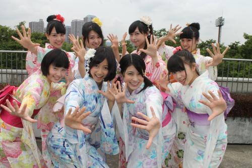 色とりどりの浴衣姿を披露。前日6月30日には大阪三大祭りの1つ「愛染(あいぜん)まつり」に参加し、リーダーの西園みすず(18)は「全国のいろんな夏祭りに出て、皆さんの心に“花火”を打ち上げたい」と話した。6日に下北沢GARDENで記念イベントを行う。