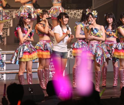 熱唱する山本彩(中央左)、渡辺美優紀(中央右)らNMB48 NMB 紅白舞台で初コンサート、横山由依も駆けつけ“ツッコミ” ギャラリーで見る この記事のフォト 2013年07月04日の画像一覧 もっと見る 2013年07月04日の画像をもっと見る