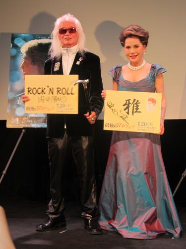 ロック歌手の内田裕也(73)が9日、都内で行われた仏映画「最後のマイ・ウェイ」(20日公開)の試写会イベントにデヴィ夫人(73)と出席した。