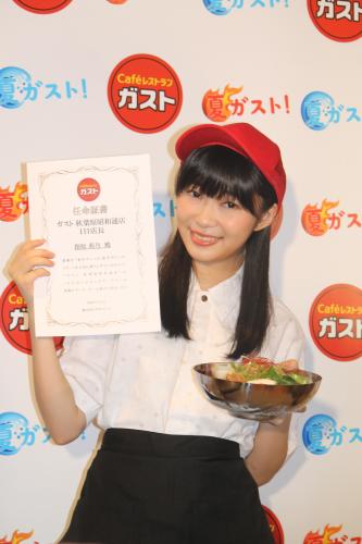 第5回AKB選抜総選挙で1位に輝いたHKT48の指原莉乃(20)が9日、東京・秋葉原のファミリーレストラン「ガスト」秋葉原昭和通店で1日店長を務めた。