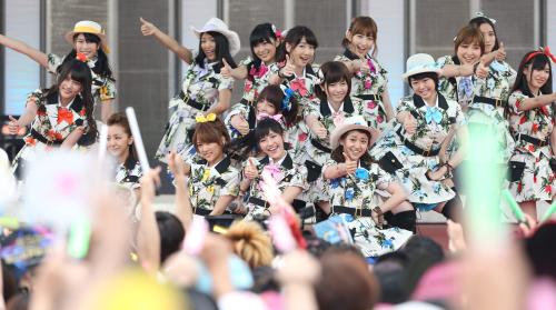 AKB48が13日、東京都港区で開幕したフジテレビのイベント「お台場合衆国2013」(9月1日まで)でオープニングスペシャルライブを行った。