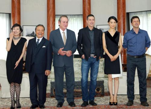 終戦直後の日本を舞台にしたハリウッド映画「終戦のエンペラー」(27日全国公開)で、マッカーサー元帥を演じたトミー・リー・ジョーンズ(66)やマシュー・フォックス(46)、西田敏行(65)、桃井かおり(62)ら出演者が18日、東京都港区の米大使公邸を訪問した。