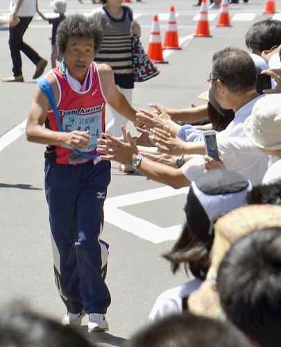 「与次郎駅伝」のゴール後、万歳する間寛平(右) 間寛平が秋田路快走!活性化に一役、再訪誓う「もう一度来たい」 ギャラリーで見る この記事のフォト 2013年07月20日の画像一覧 もっと見る 2013年07月20日の画像をもっと見る