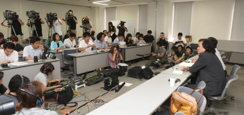 大勢の報道陣が集まった高橋茂監督の会見